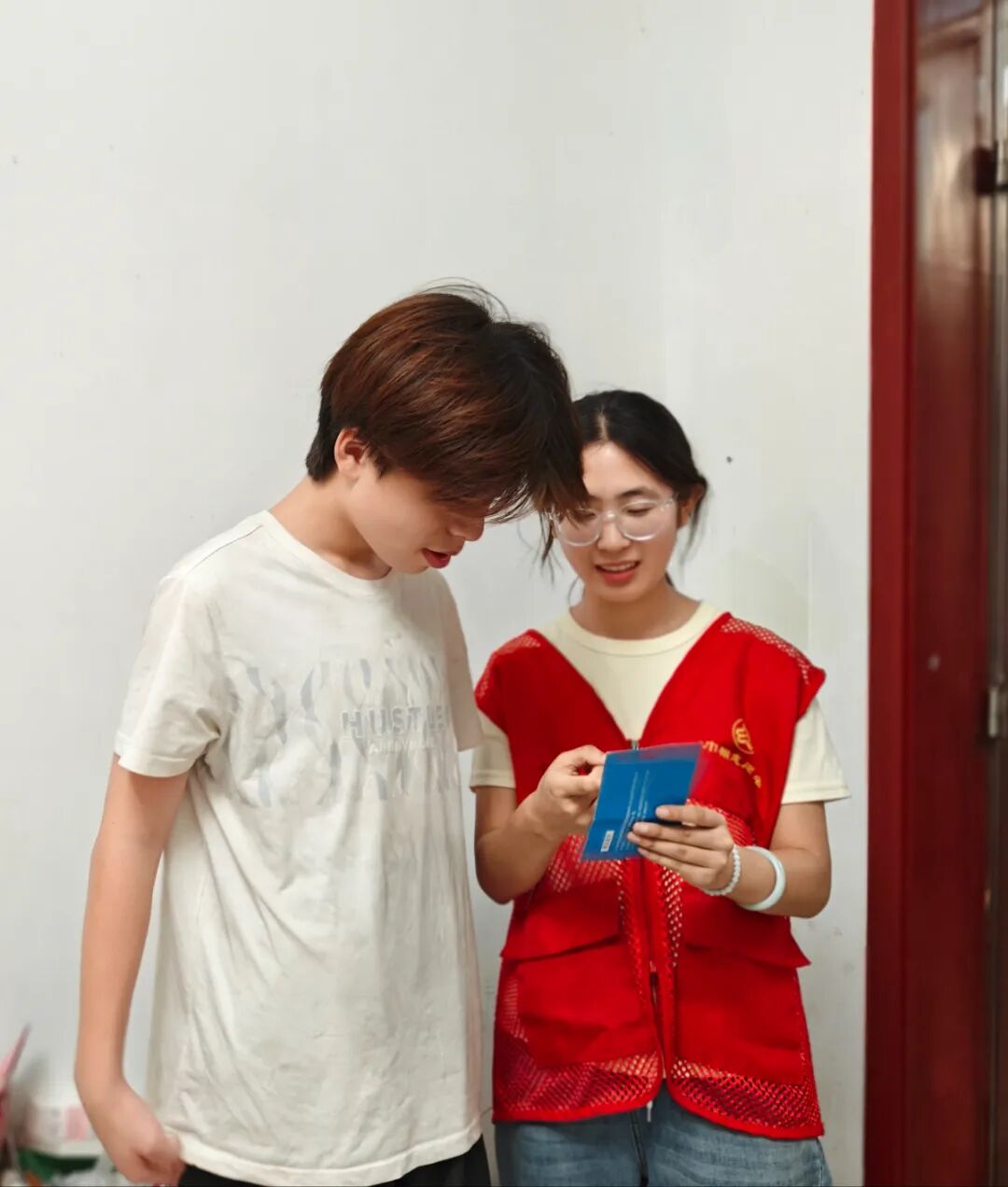 随着宣讲的深入,家长们的顾虑逐渐消解,学生眼中也燃起对未来的憧憬。社区广场上,志愿者为居民系统讲解政策。从助学贷款办理到奖助学金申领,条理清晰、耐心细致,帮助群众全面了解教育费用保障机制。入户走访时,志愿者为村里学生梳理资助政策体系,学生专注聆听、认真记录,眼神中充满对求学之路的期待。
