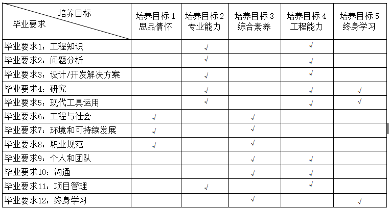 培养目标3.[综合素养]:具备满足工程实践所需的非专业通识知识体系。具有人文社会科学素养;具有创新意识、创业精神和工程师的专业素质;具有良好的团队合作与沟通能力,能够在不同职能团队中作为核心成员或者领导者,表现出良好的组织能力、决策能力与沟通协调能力。